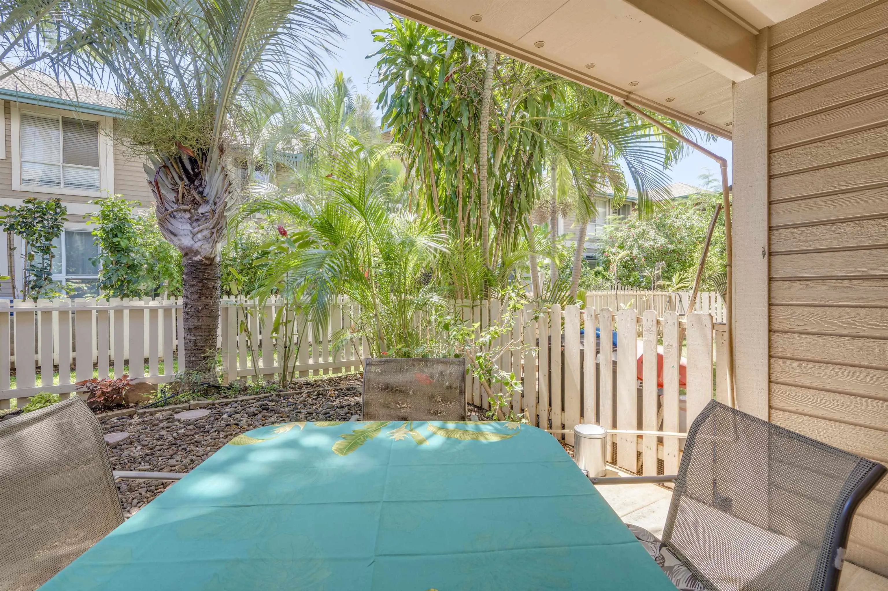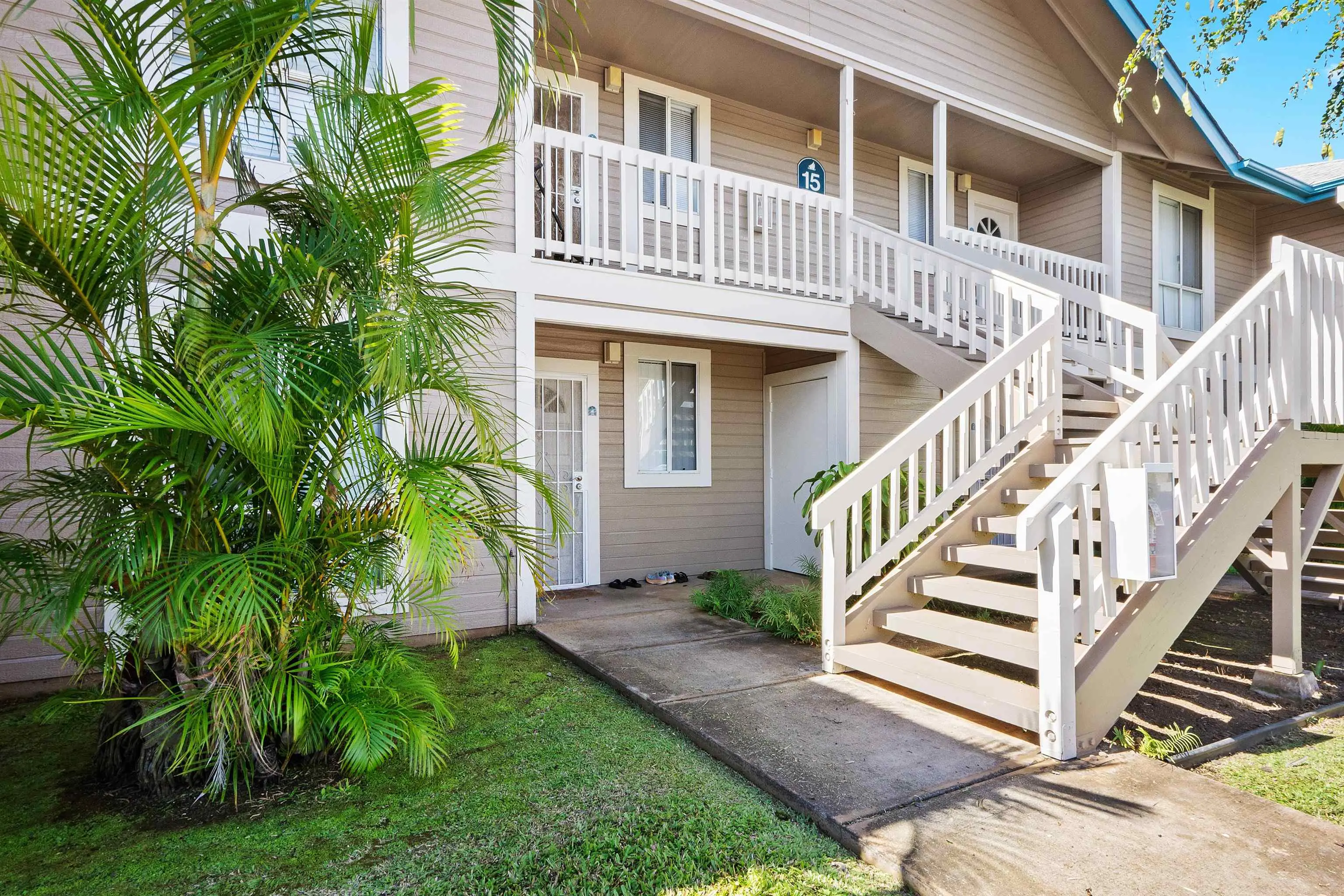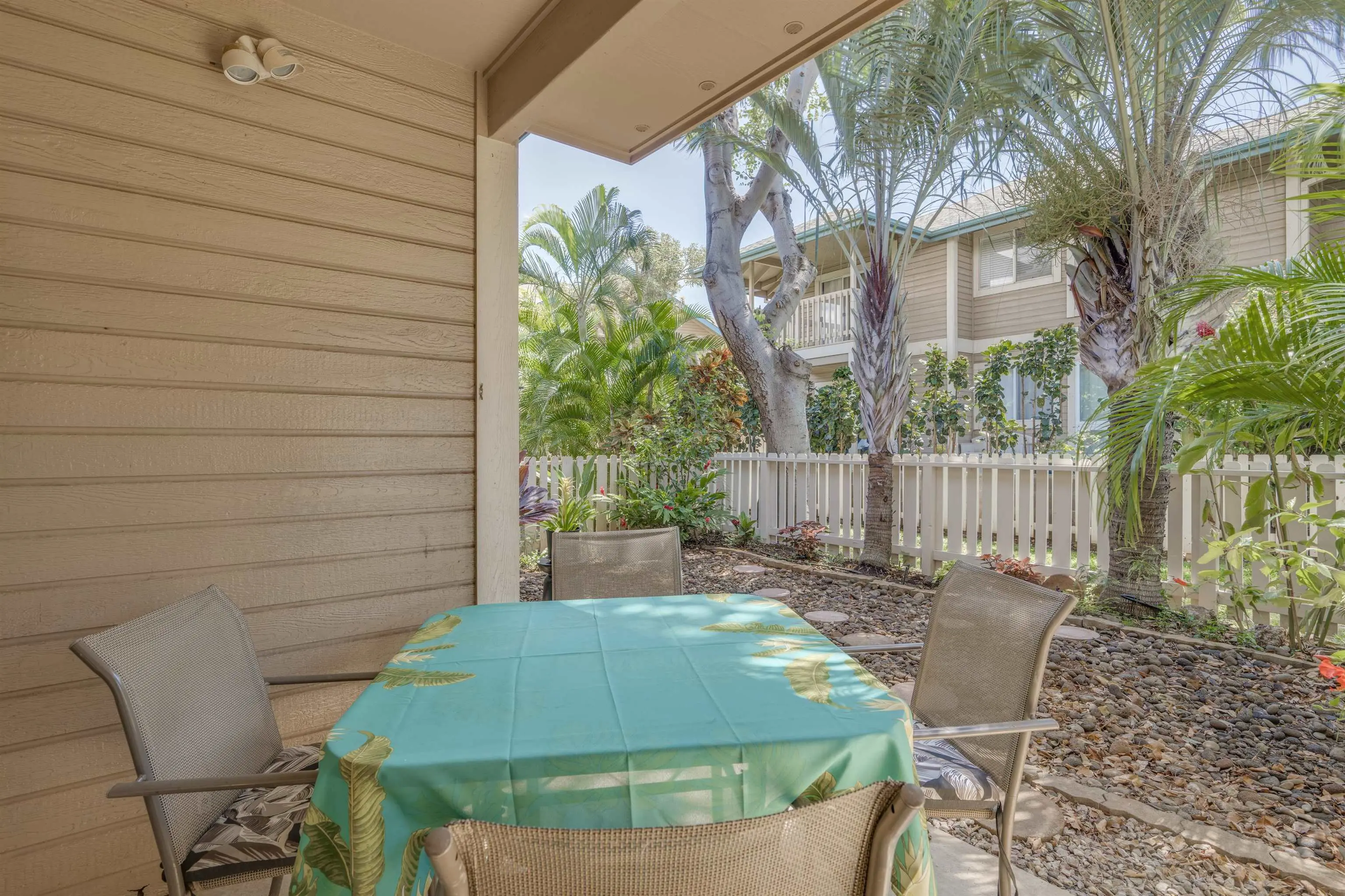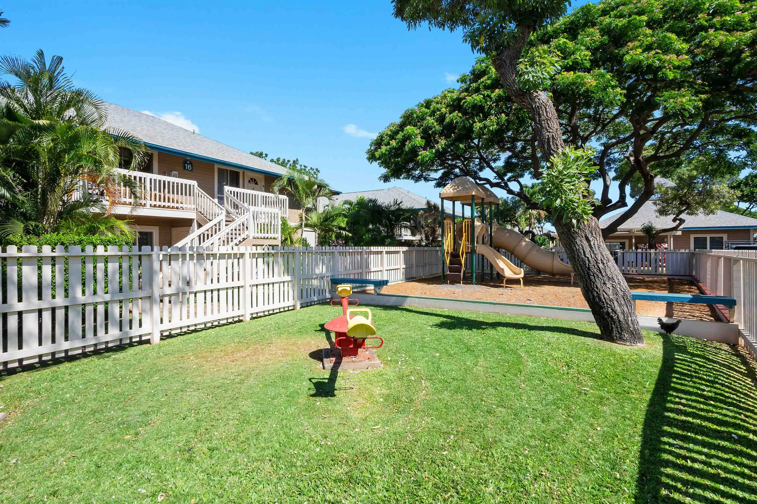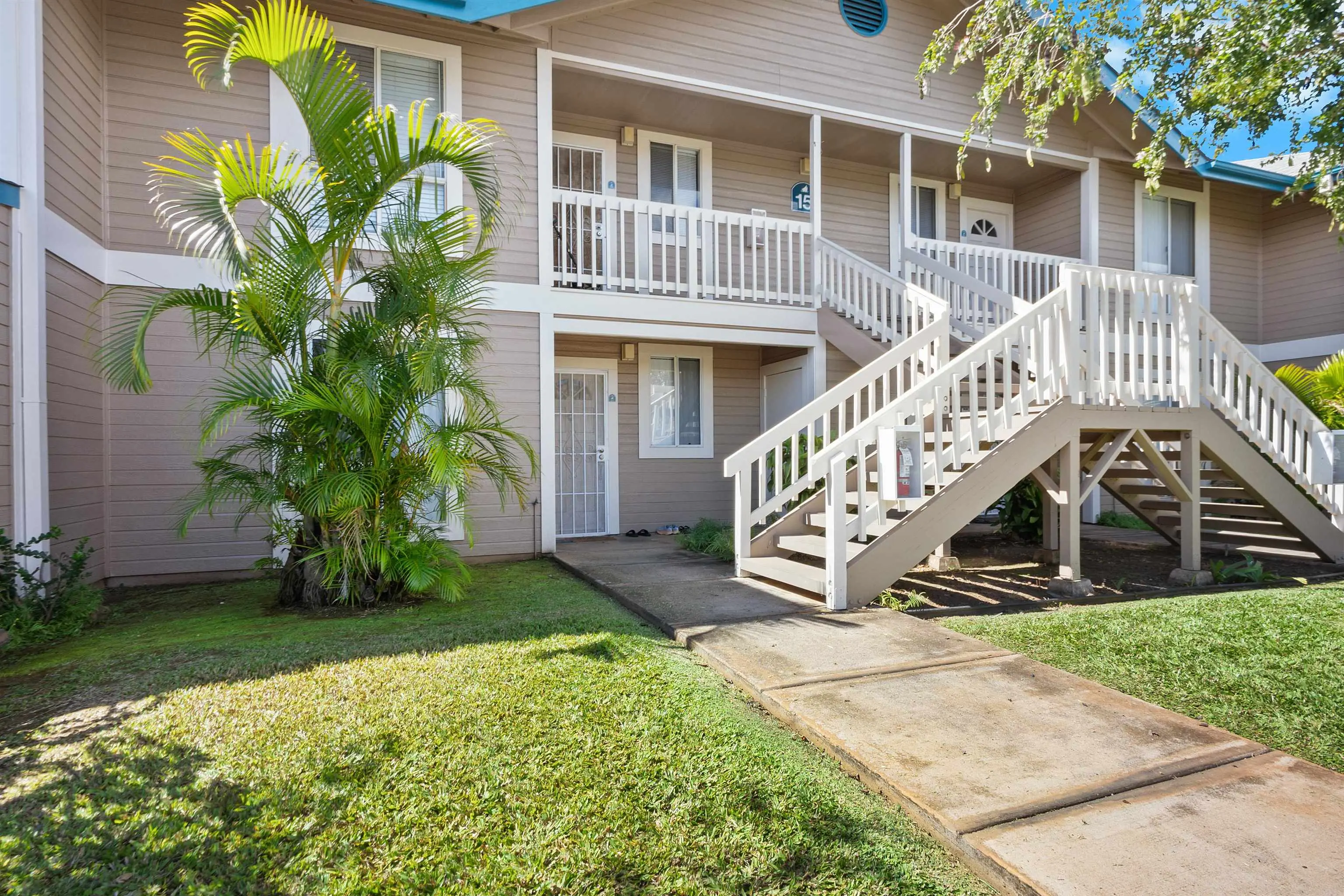 Most of the 31 concrete and wood two-story apartment buildings in this enclave cluster in groups. The subdivision includes a total of 346 units. Every residence features either a patio or a private lanai. Some upper-level homes offer panoramic views of the nearby West Maui Mountains. Downstairs apartments often enjoy attractively fenced back yards.