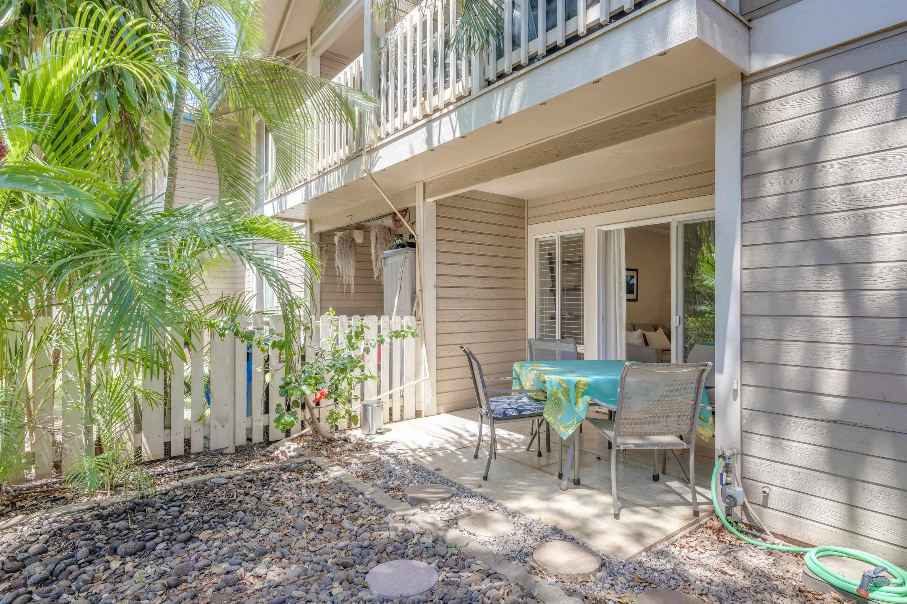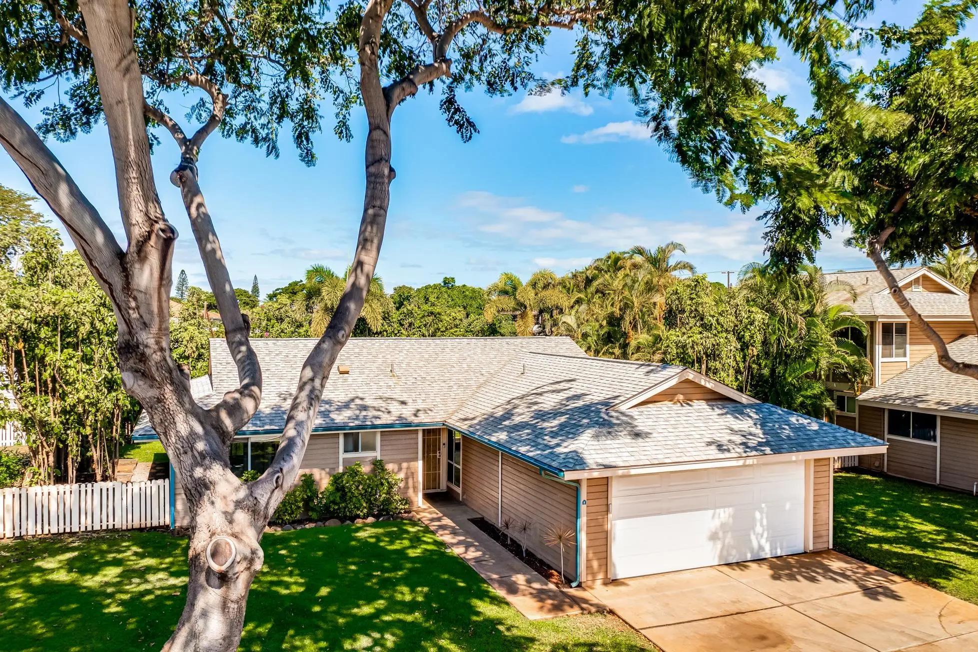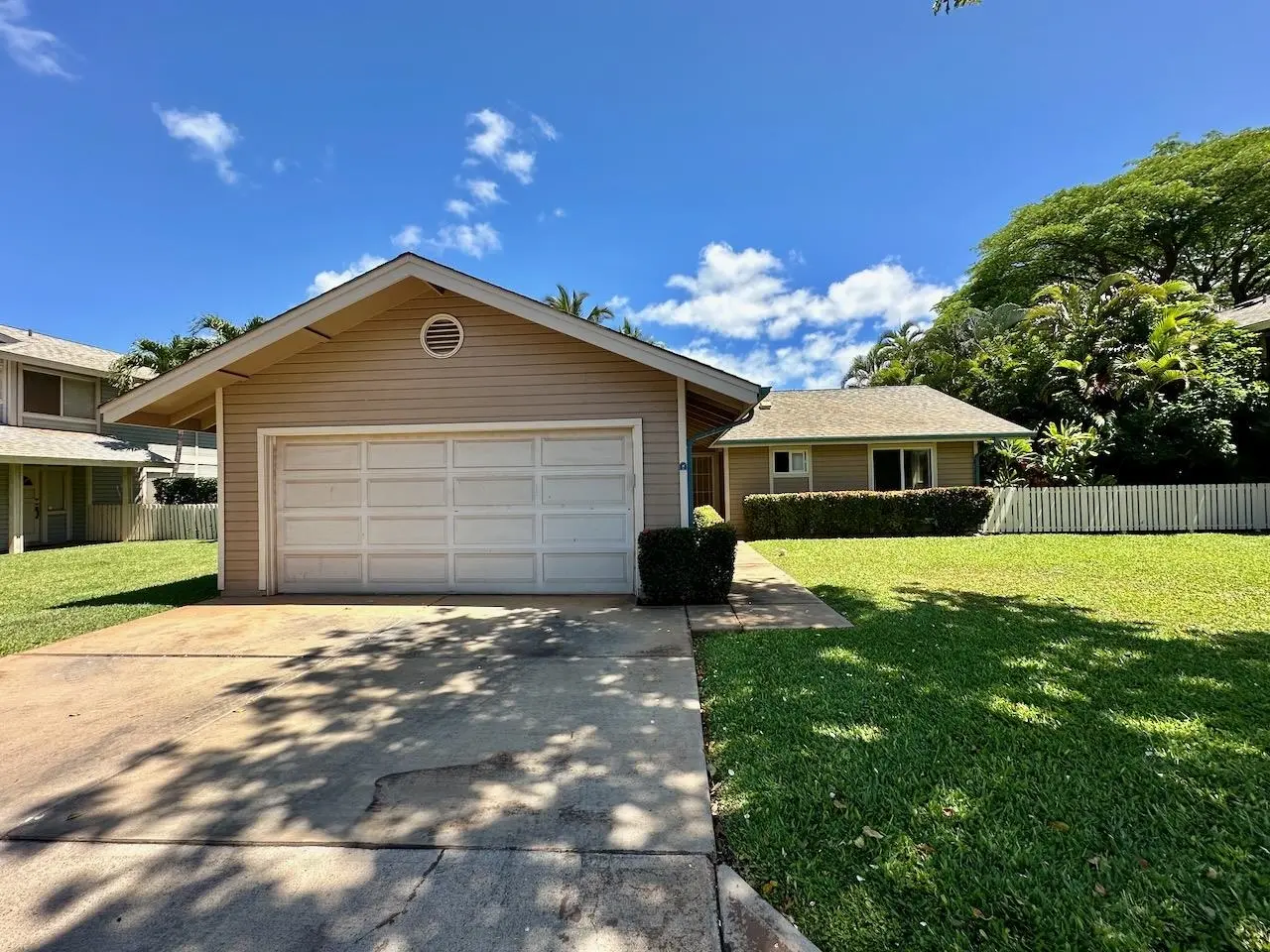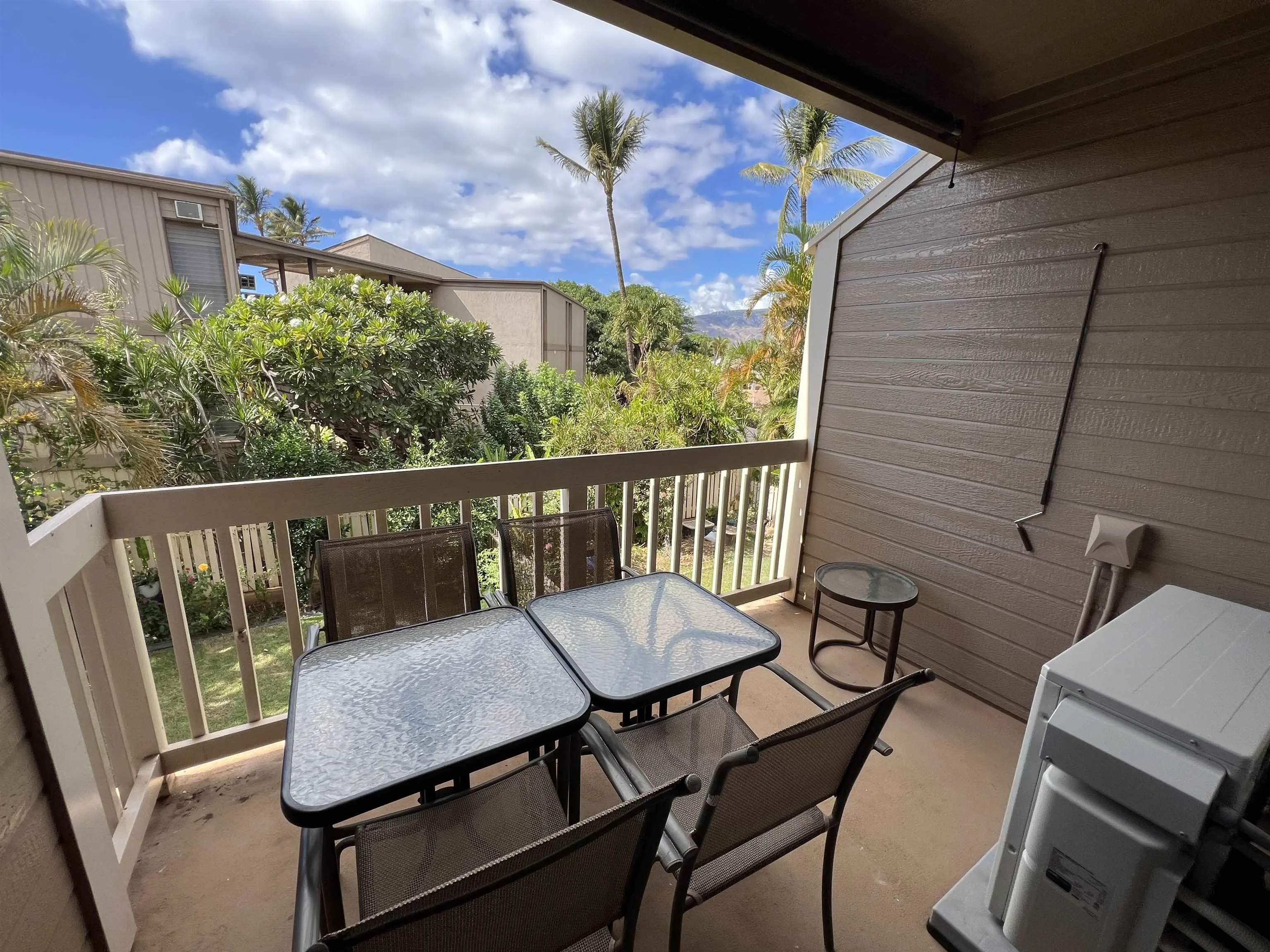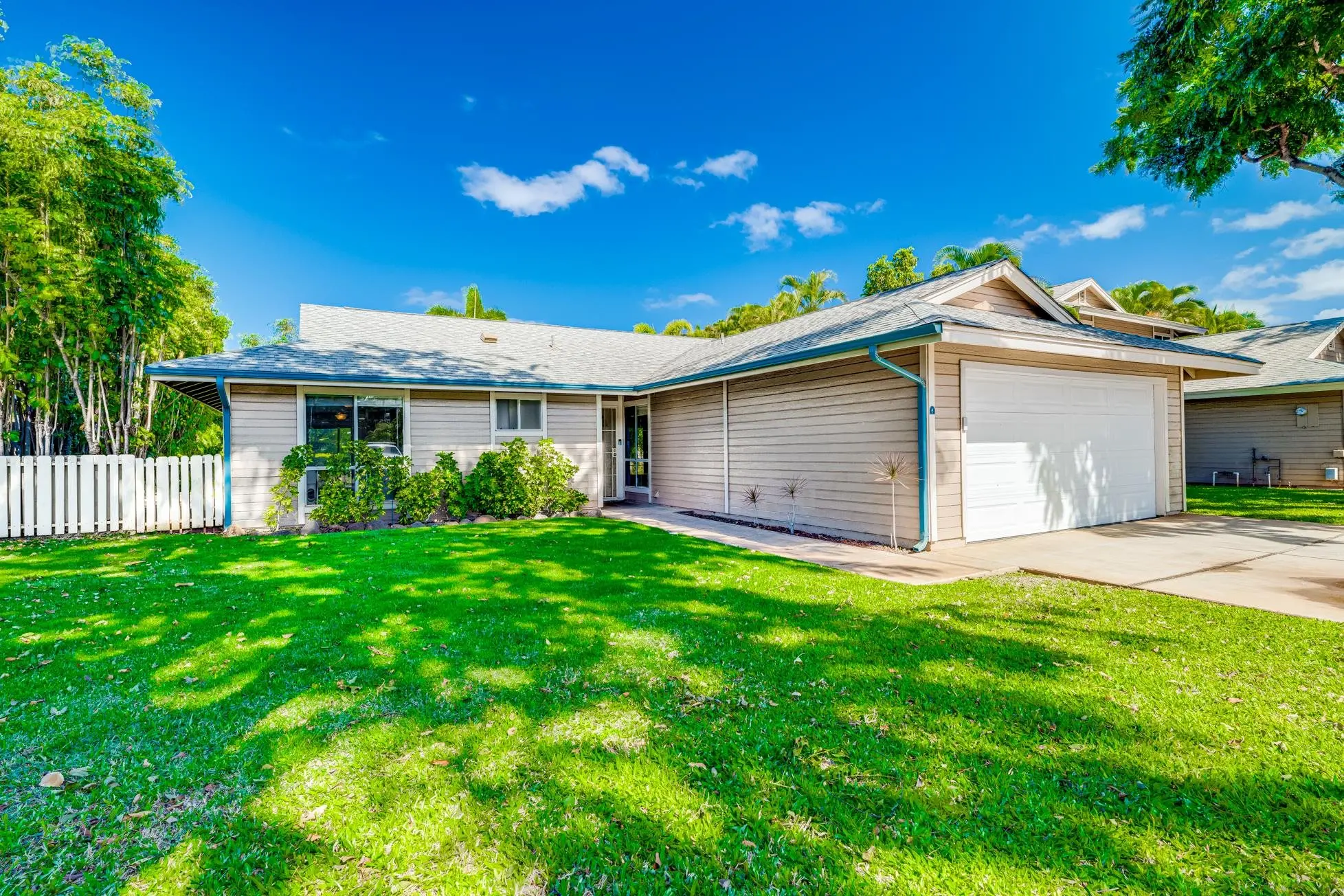 Most of the 31 concrete and wood two-story apartment buildings in this enclave cluster in groups. The subdivision includes a total of 346 units. Every residence features either a patio or a private lanai. Some upper-level homes offer panoramic views of the nearby West Maui Mountains. Downstairs apartments often enjoy attractively fenced back yards.