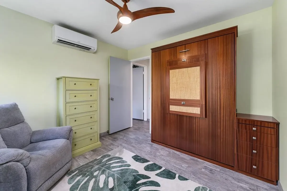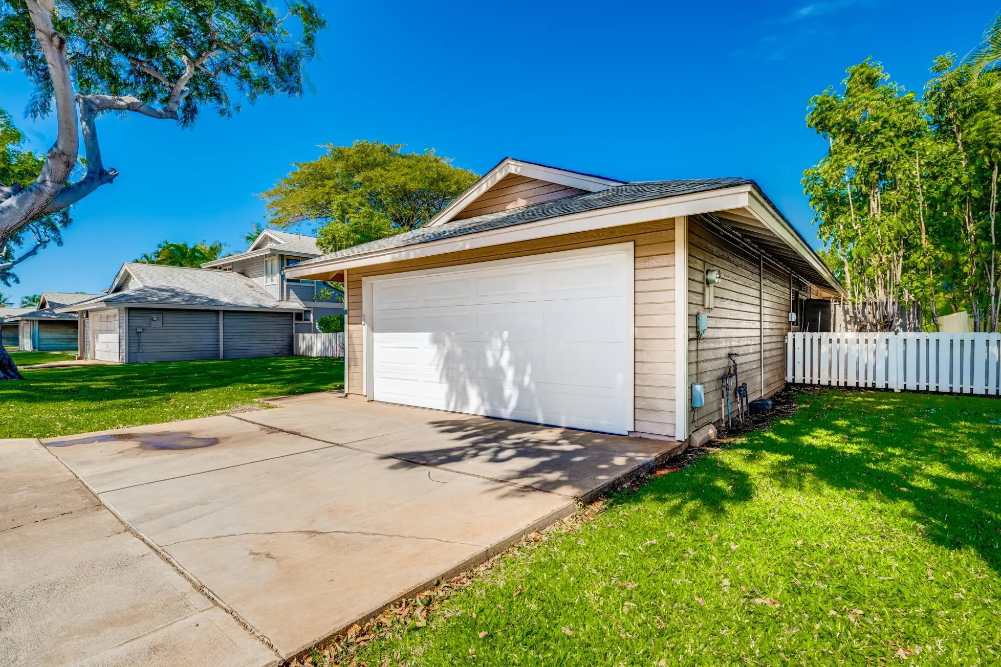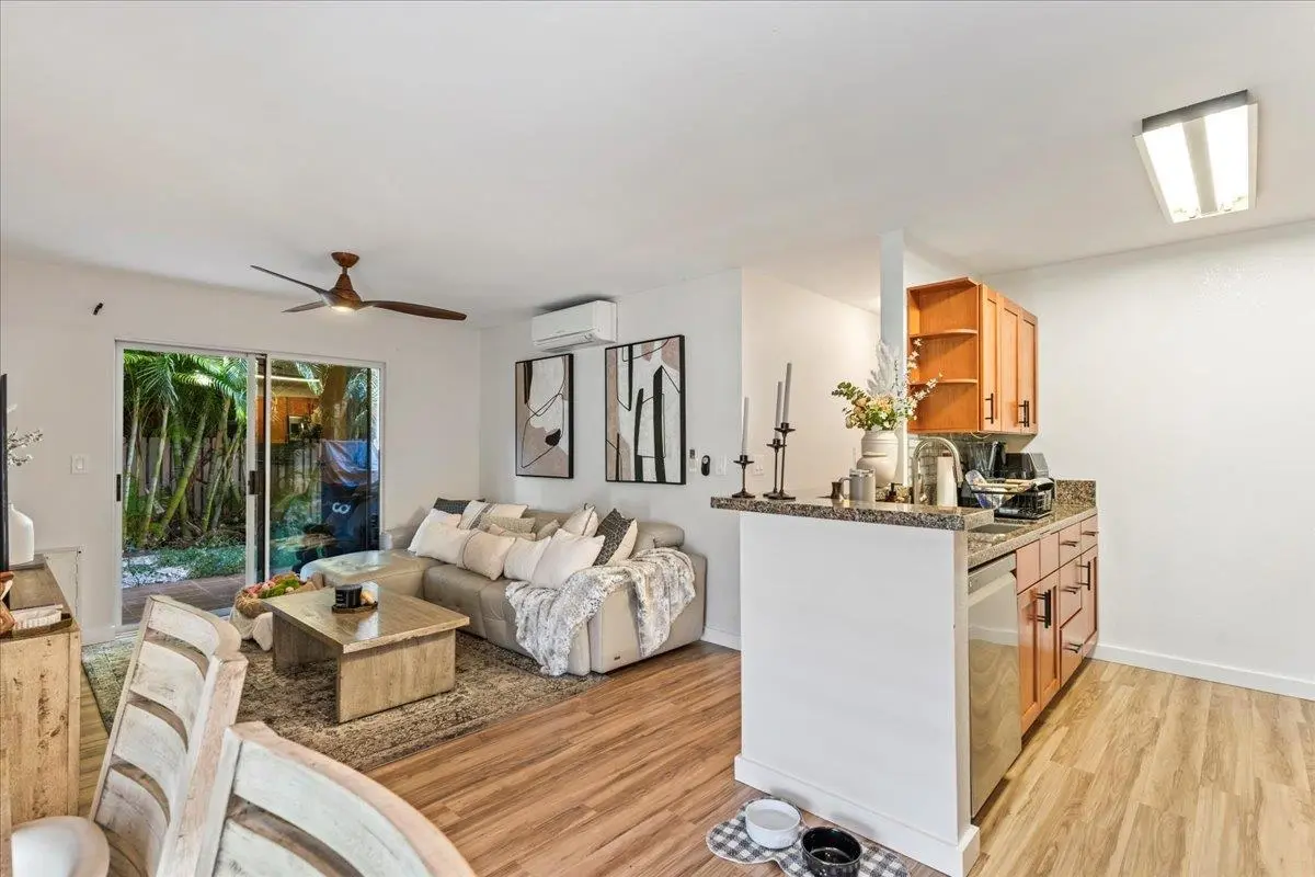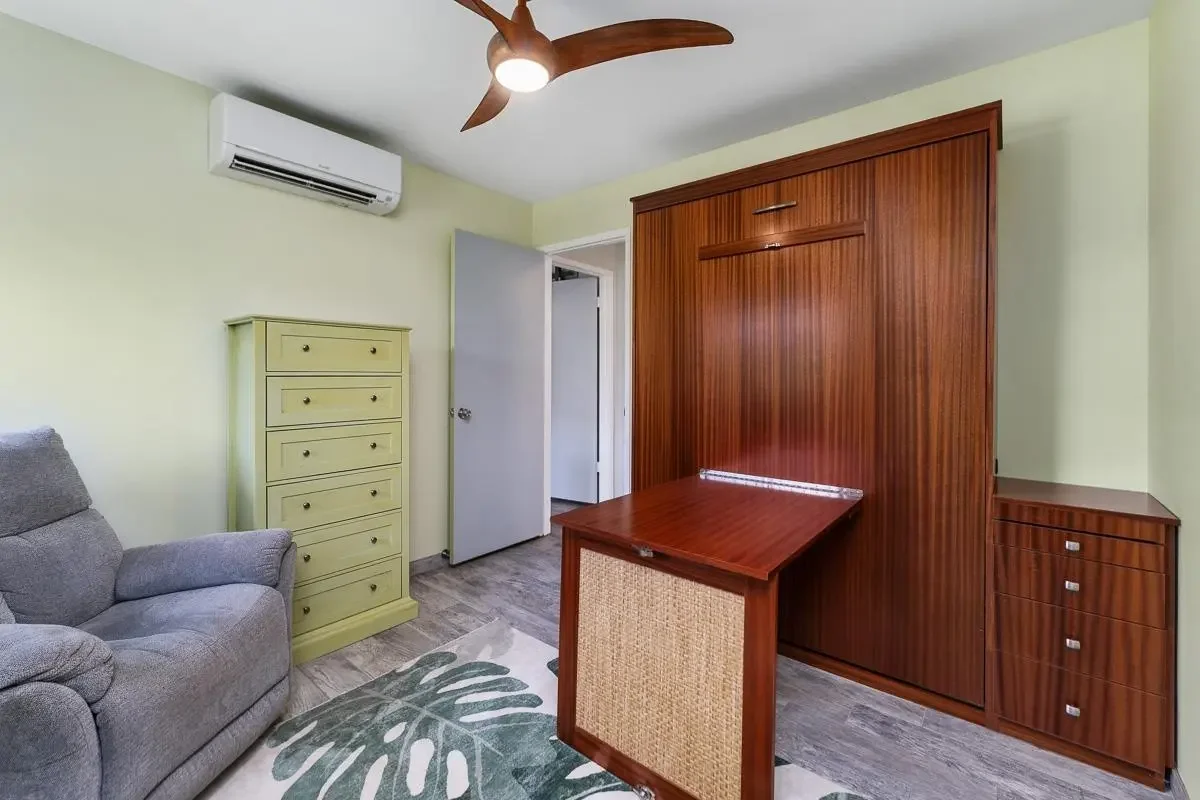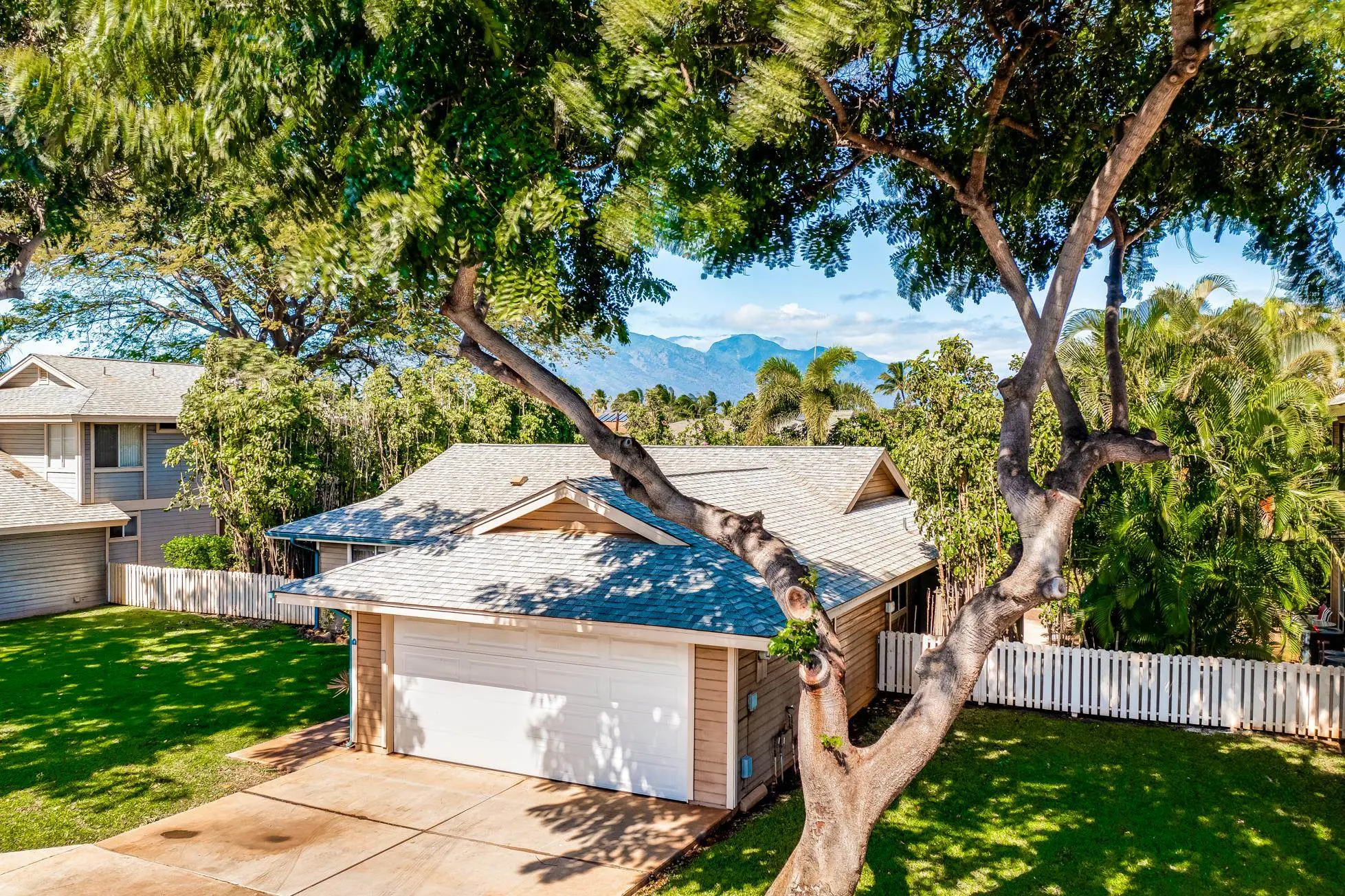 Most of the 31 concrete and wood two-story apartment buildings in this enclave cluster in groups. The subdivision includes a total of 346 units. Every residence features either a patio or a private lanai. Some upper-level homes offer panoramic views of the nearby West Maui Mountains. Downstairs apartments often enjoy attractively fenced back yards.