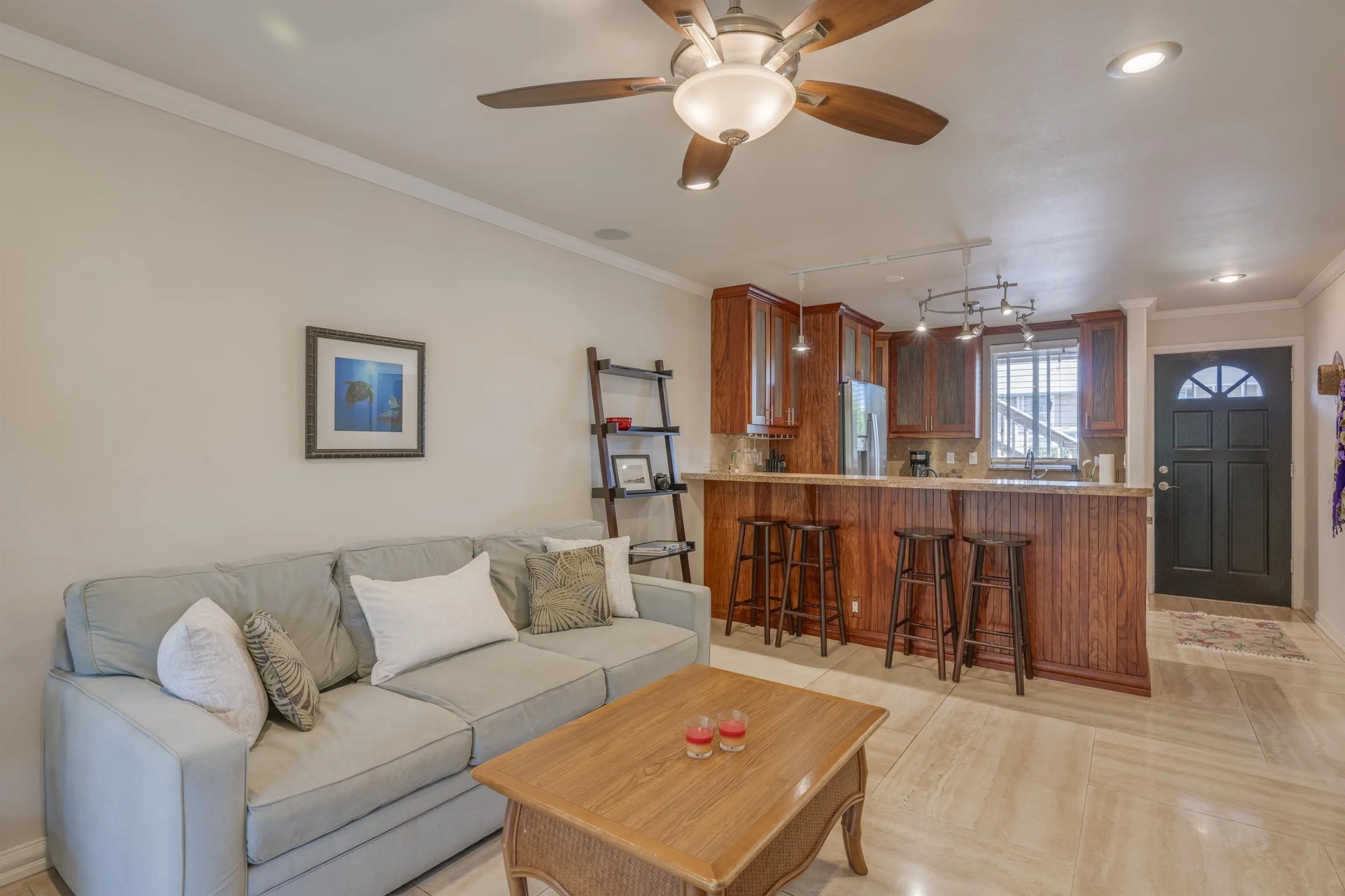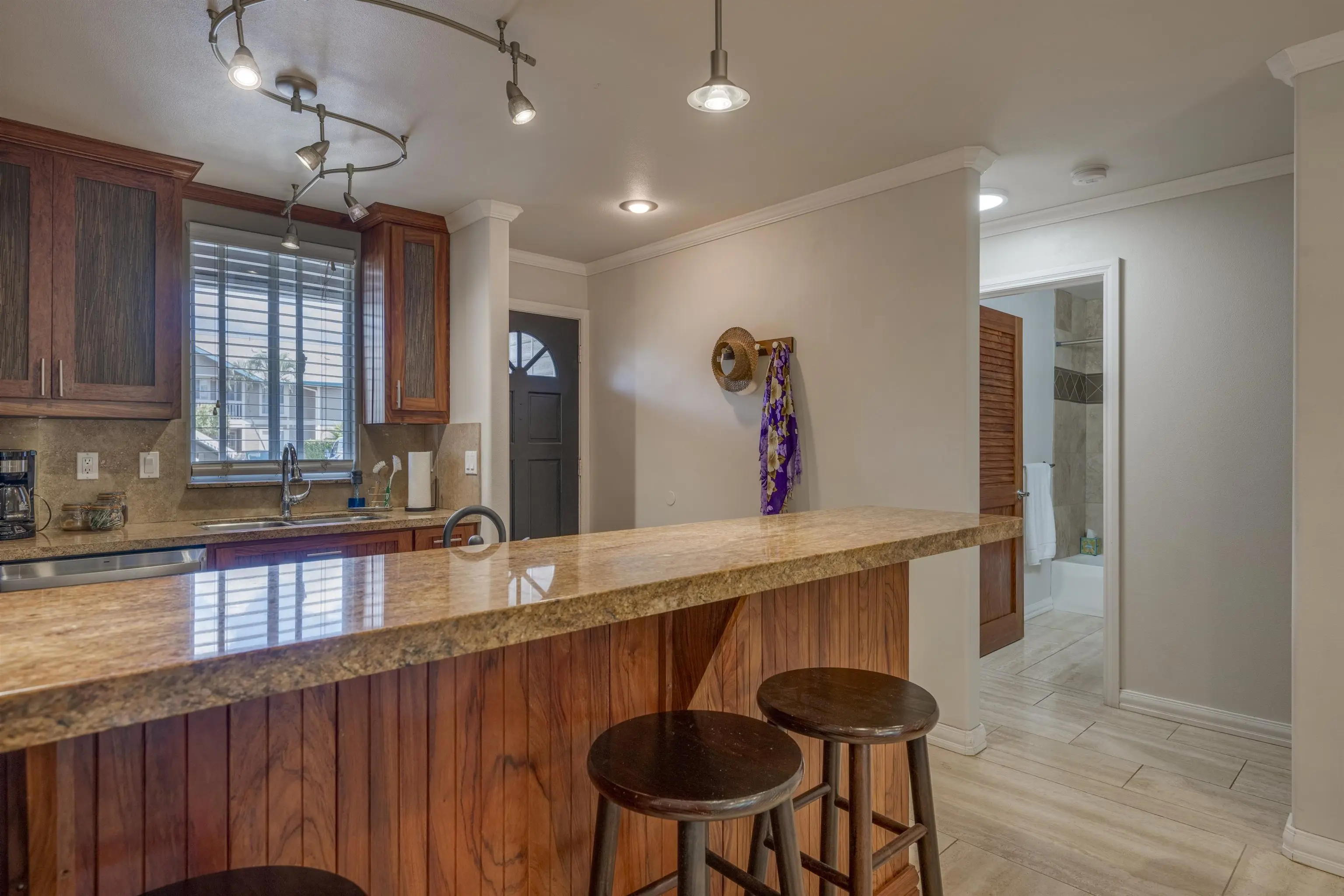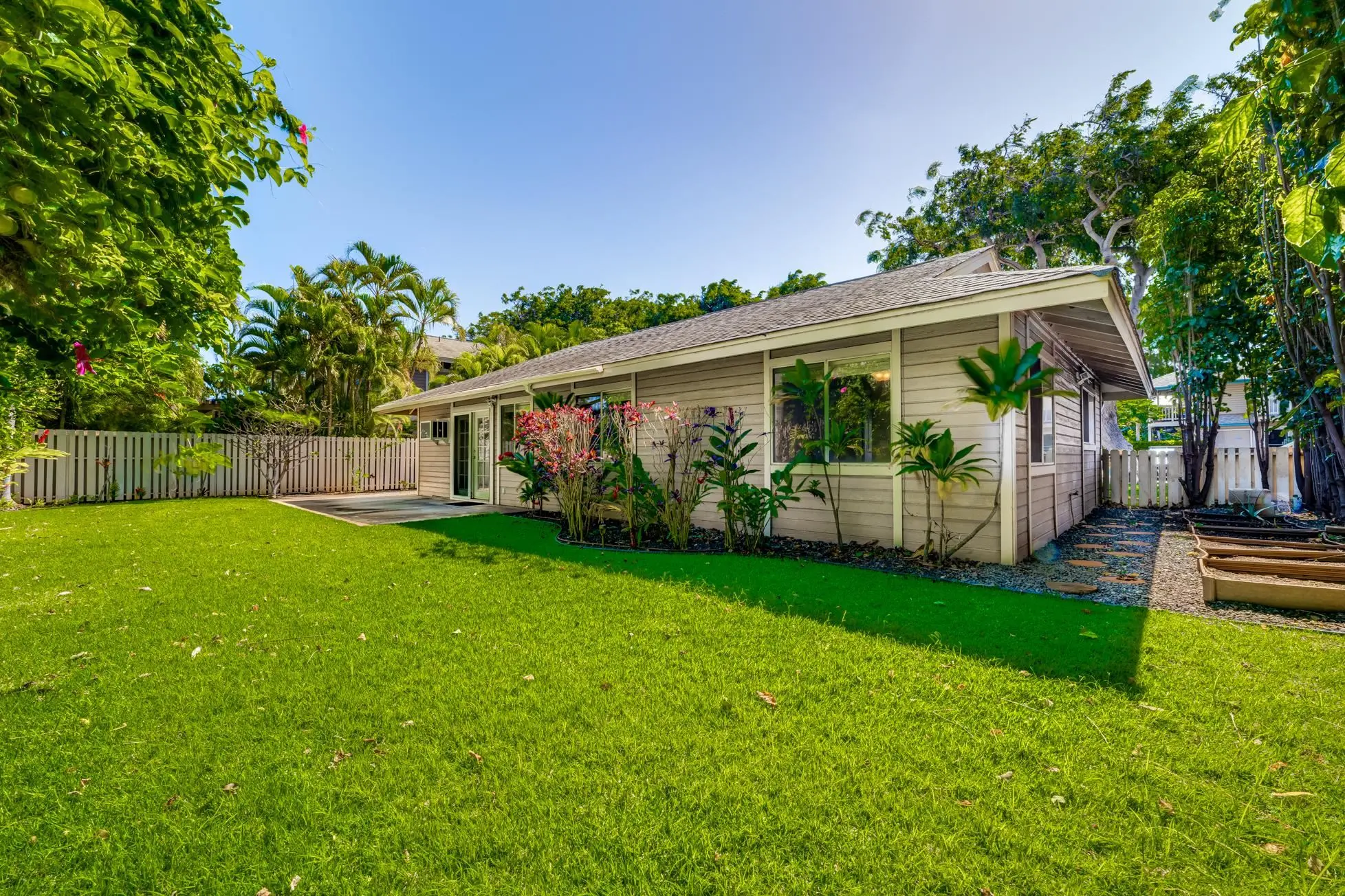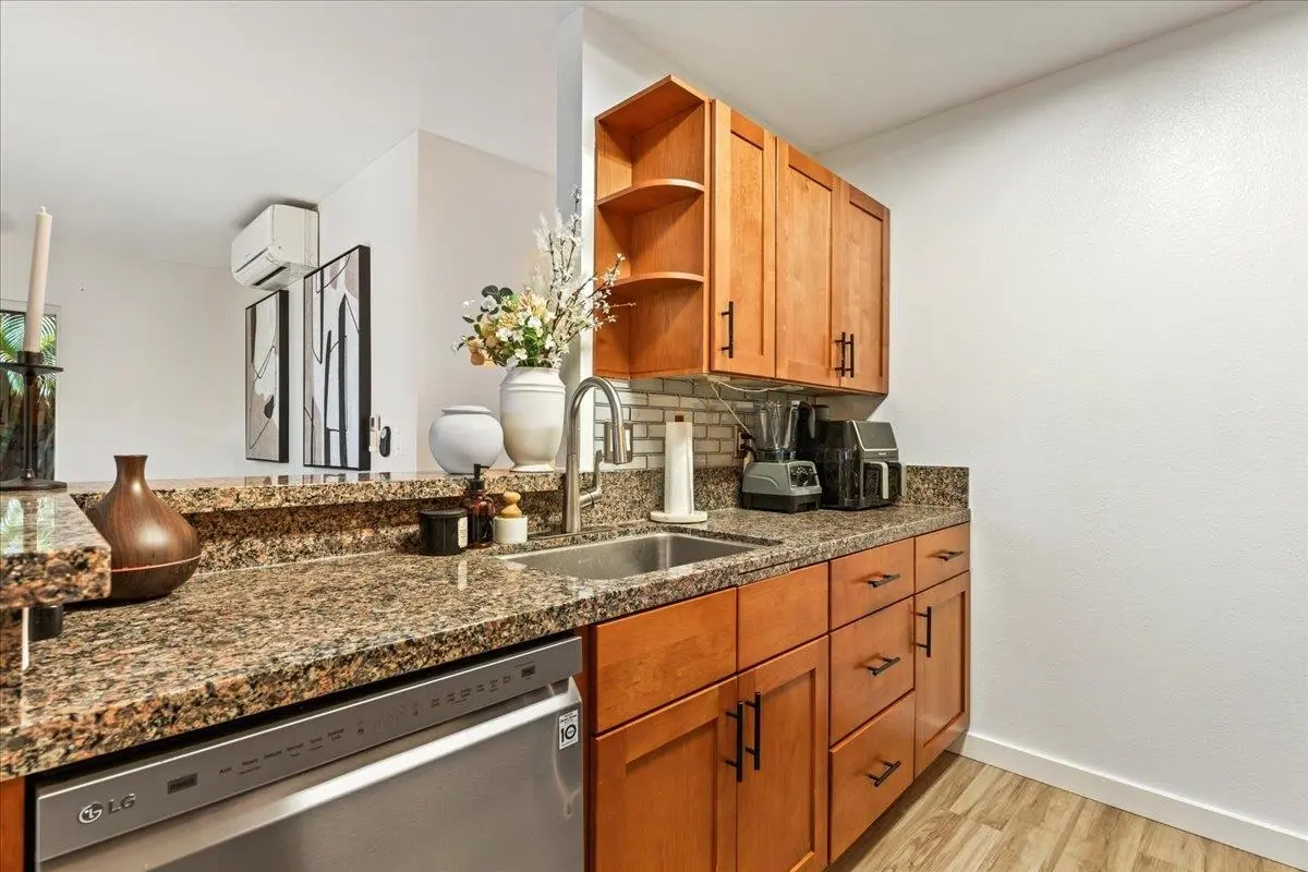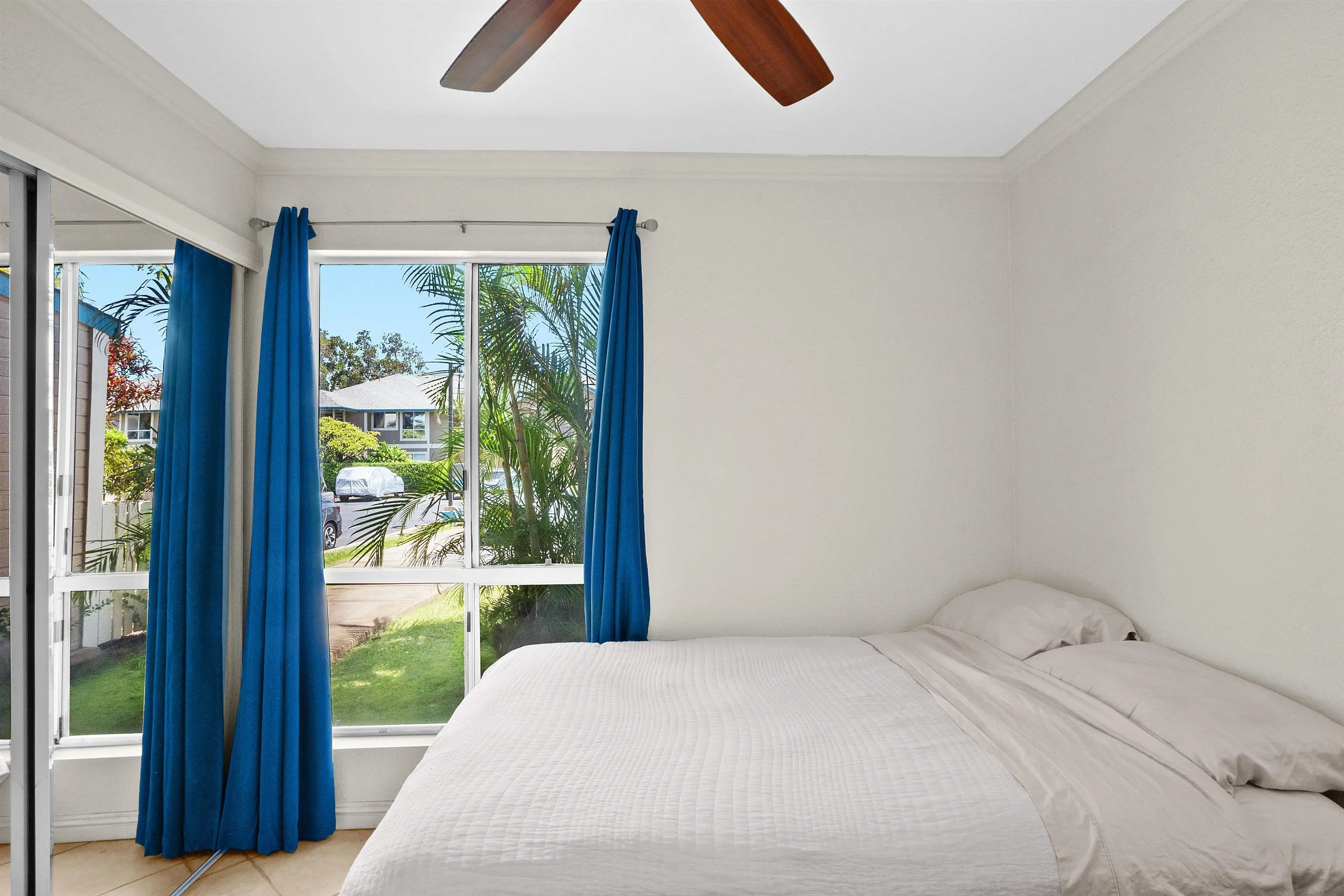 Most of the 31 concrete and wood two-story apartment buildings in this enclave cluster in groups. The subdivision includes a total of 346 units. Every residence features either a patio or a private lanai. Some upper-level homes offer panoramic views of the nearby West Maui Mountains. Downstairs apartments often enjoy attractively fenced back yards.
