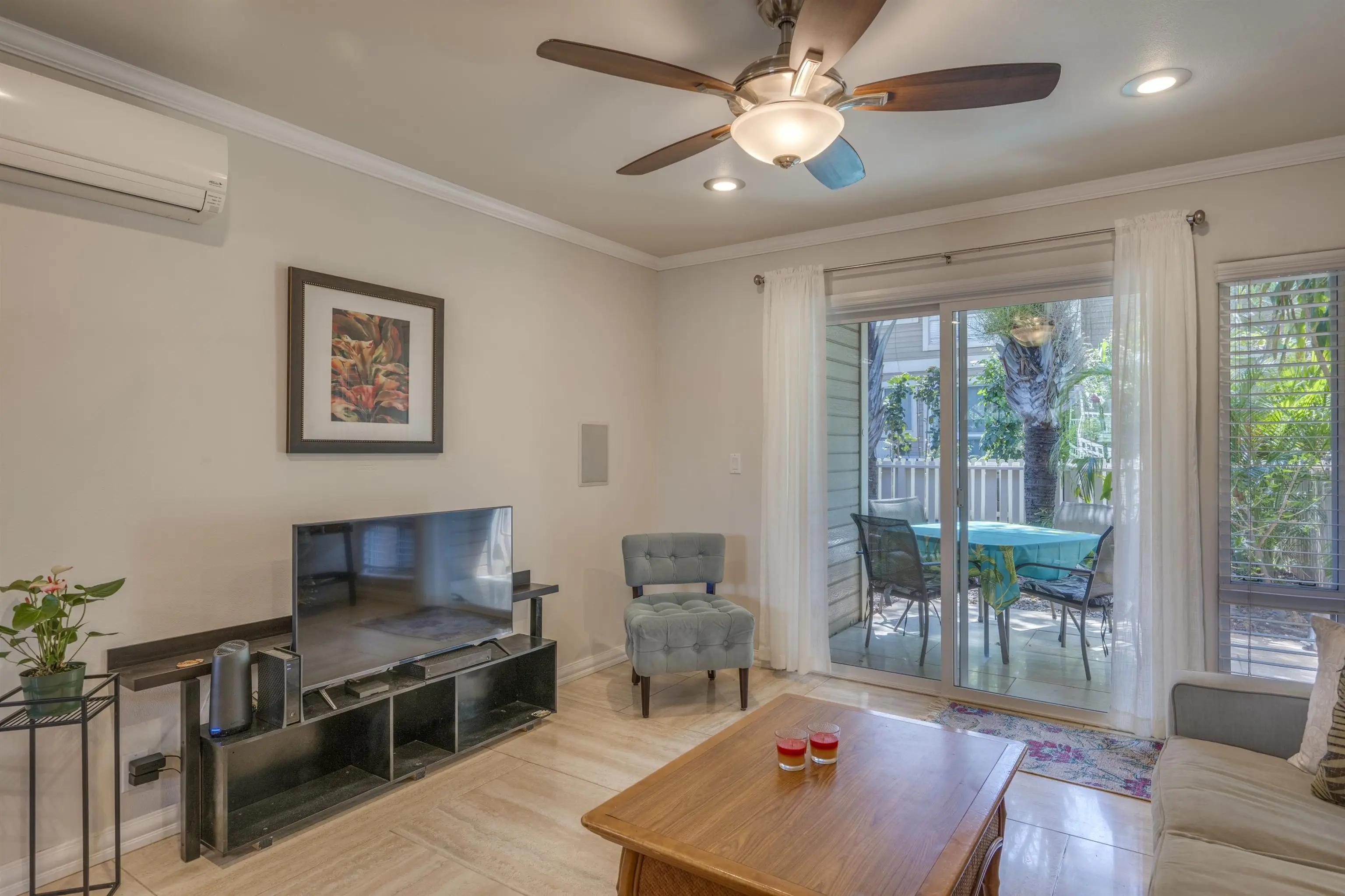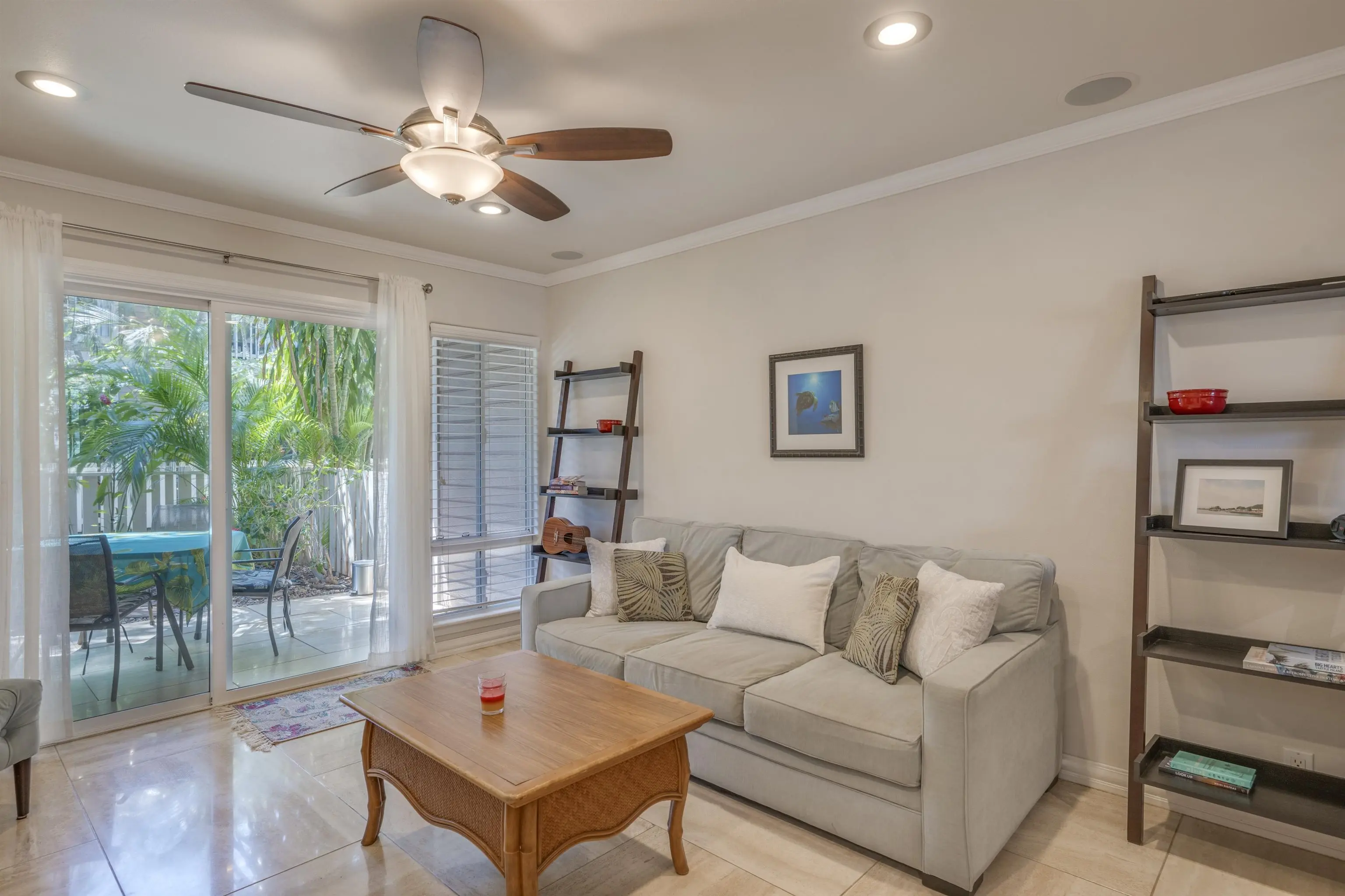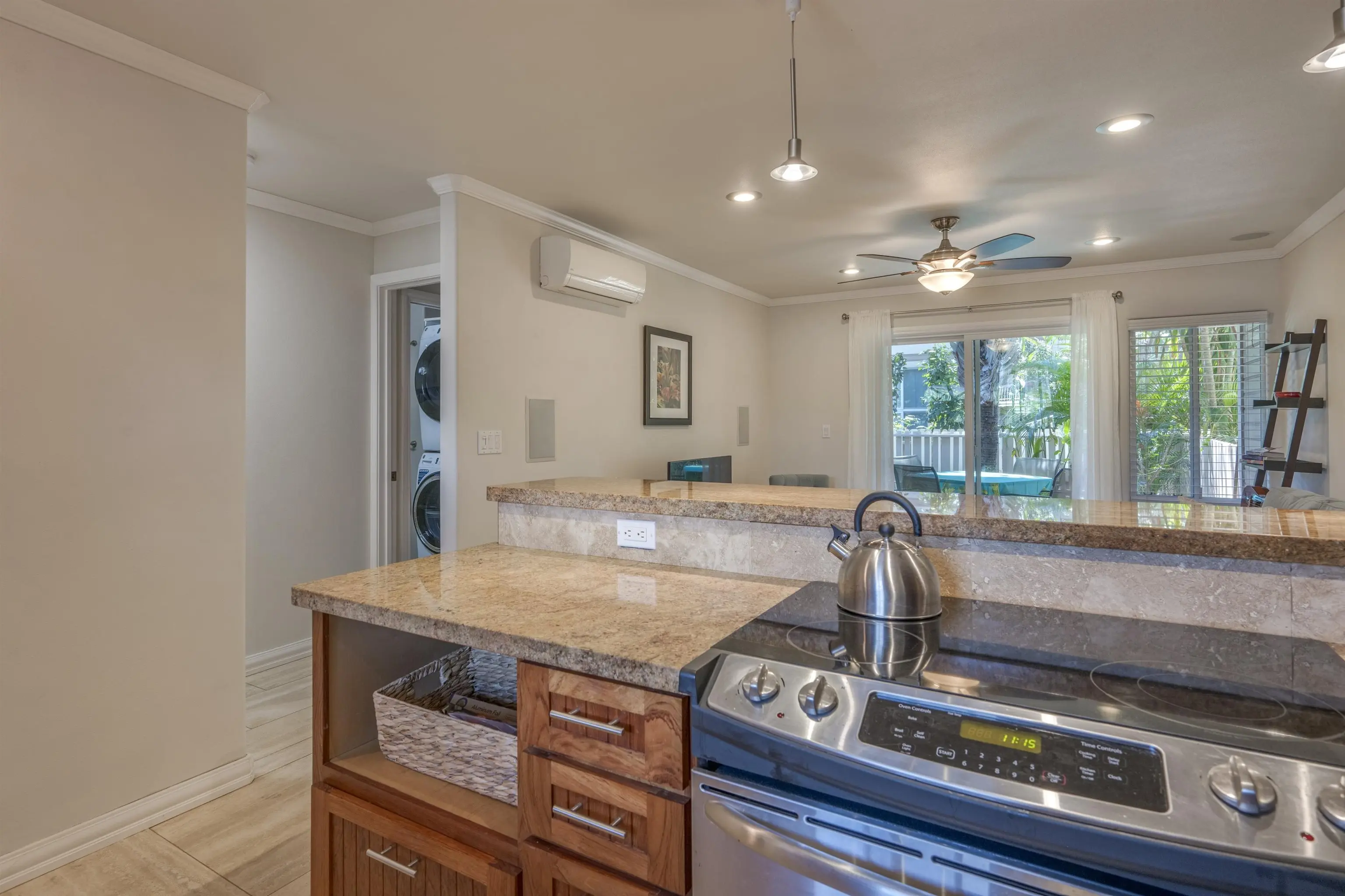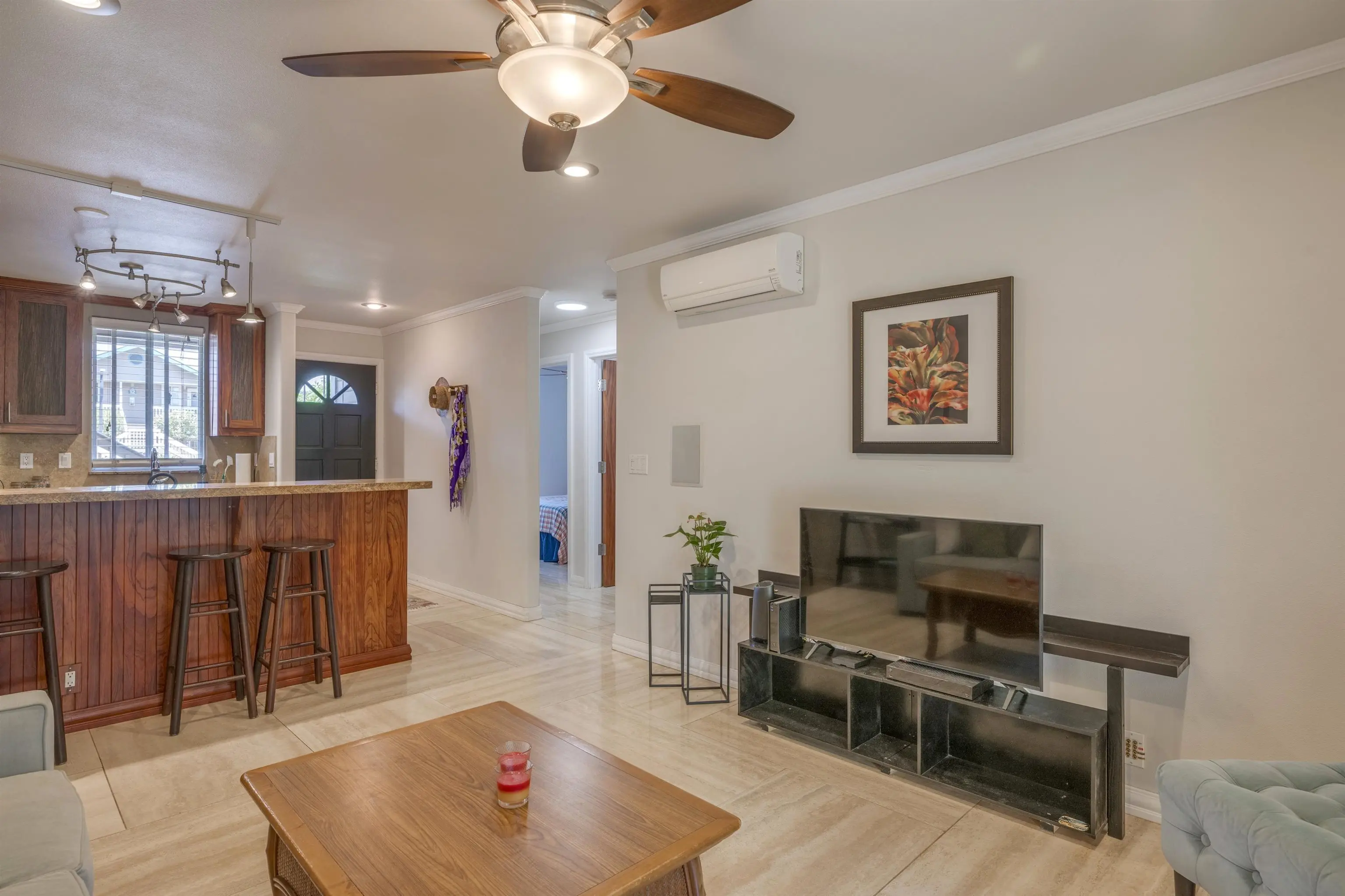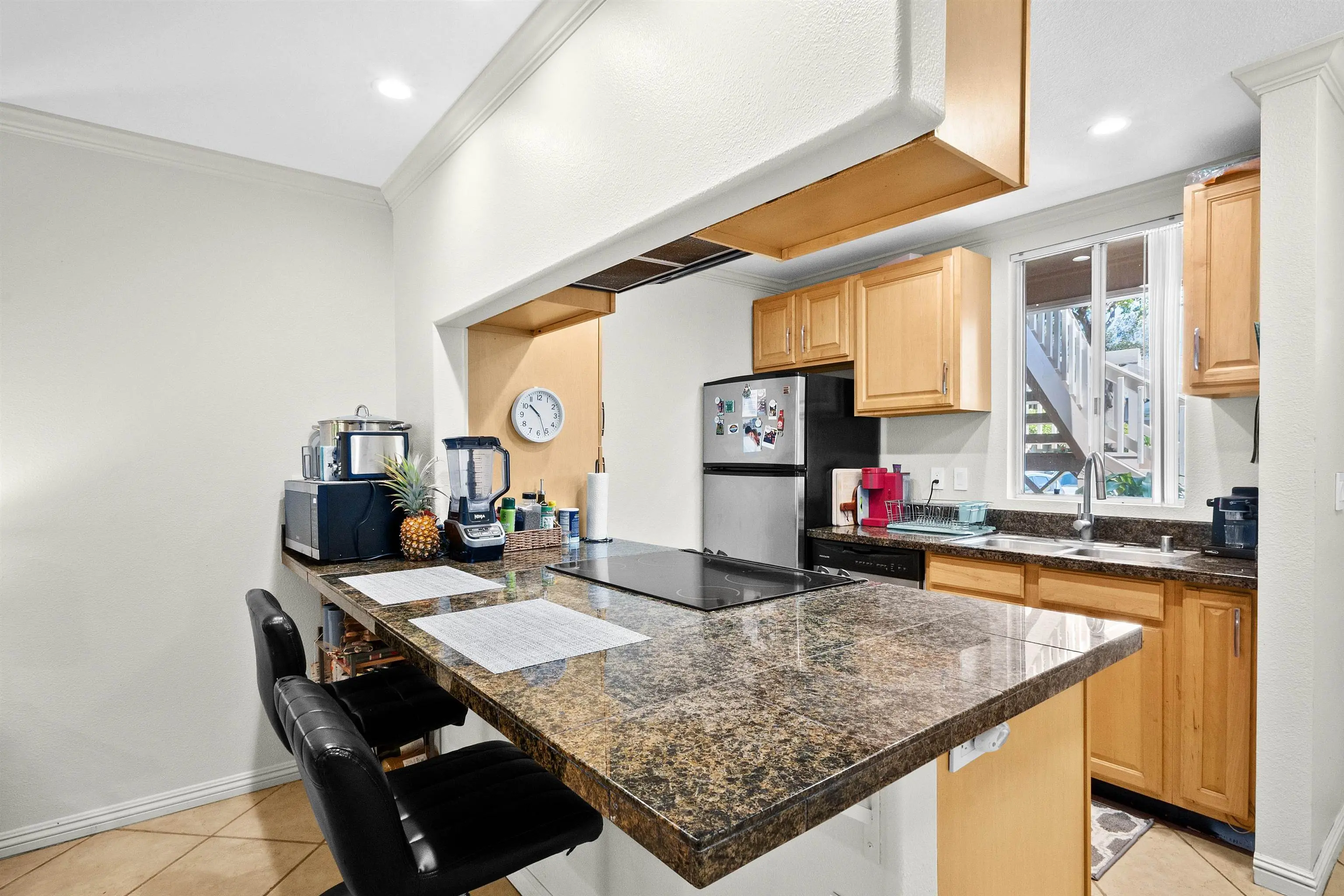 Most of the 31 concrete and wood two-story apartment buildings in this enclave cluster in groups. The subdivision includes a total of 346 units. Every residence features either a patio or a private lanai. Some upper-level homes offer panoramic views of the nearby West Maui Mountains. Downstairs apartments often enjoy attractively fenced back yards.