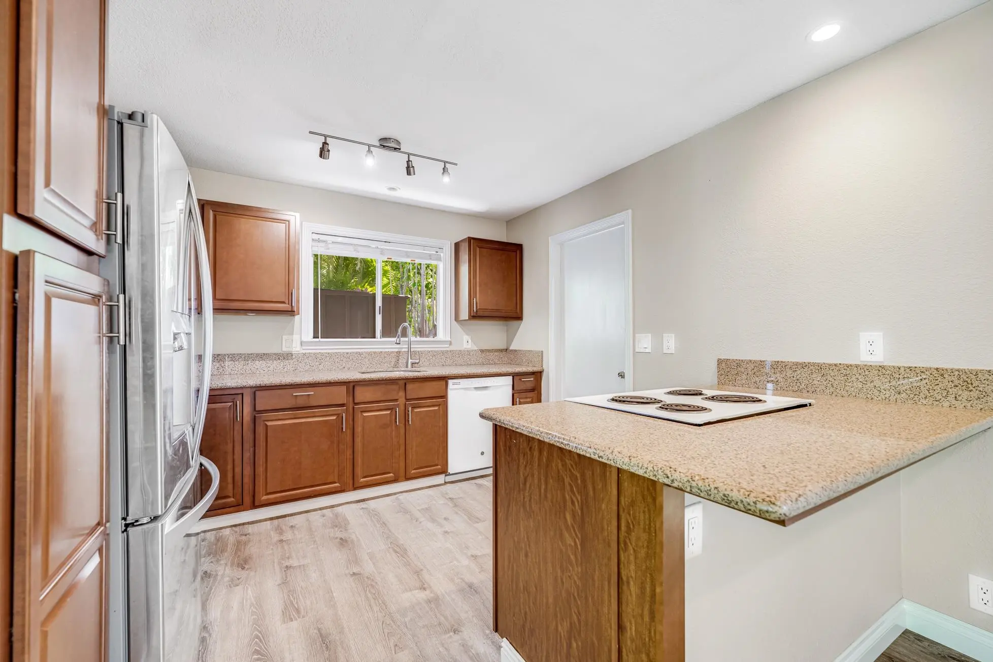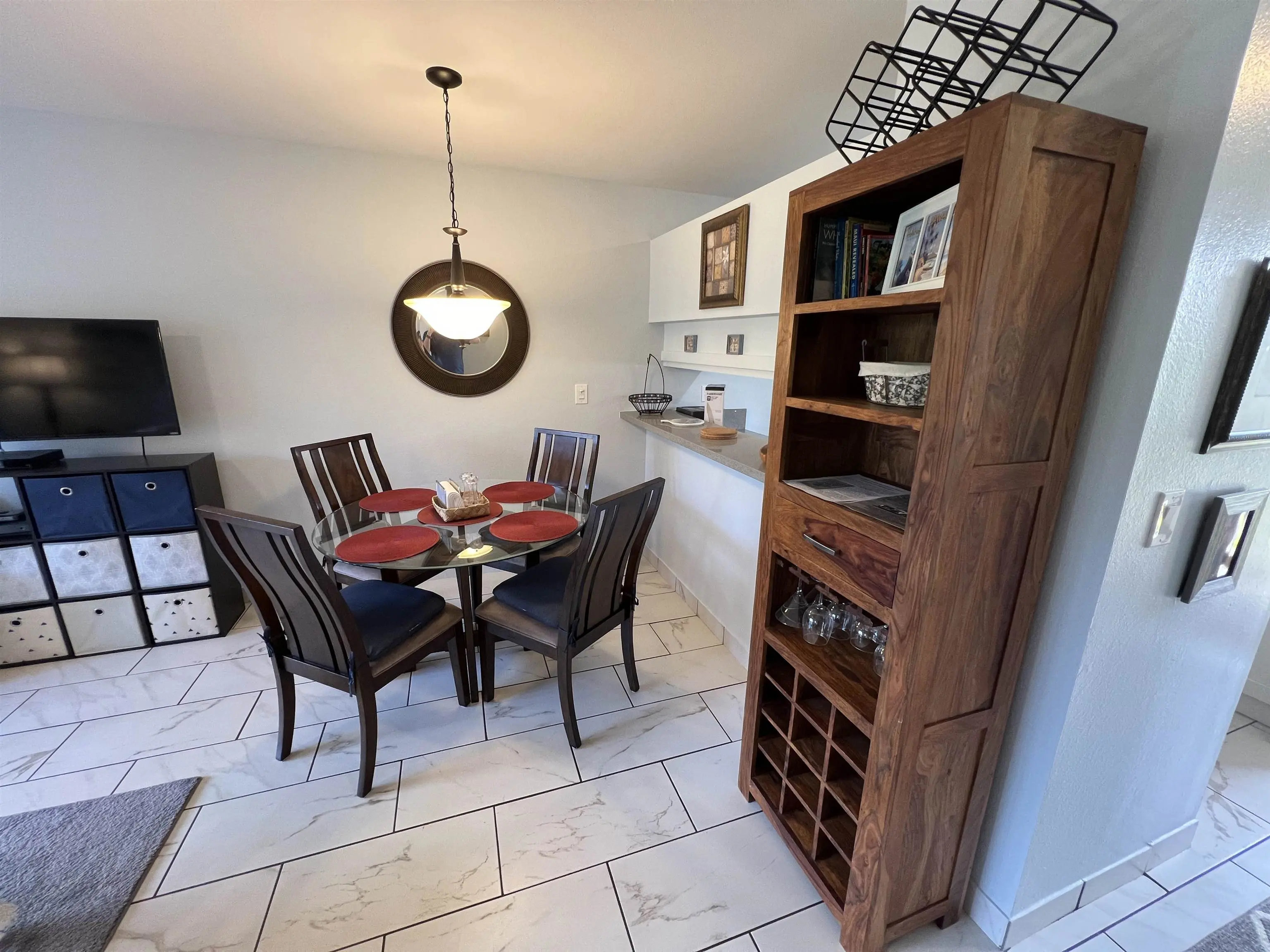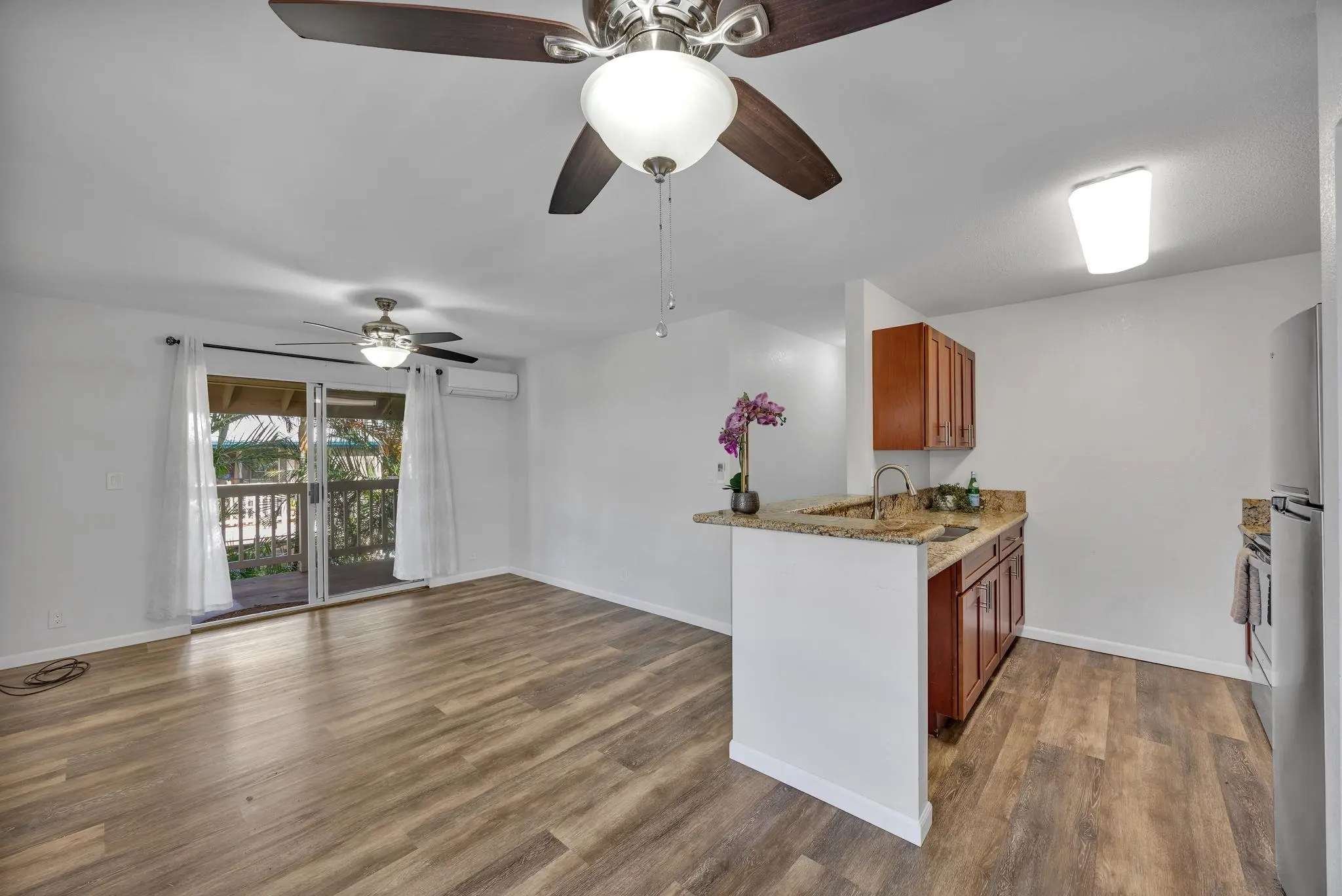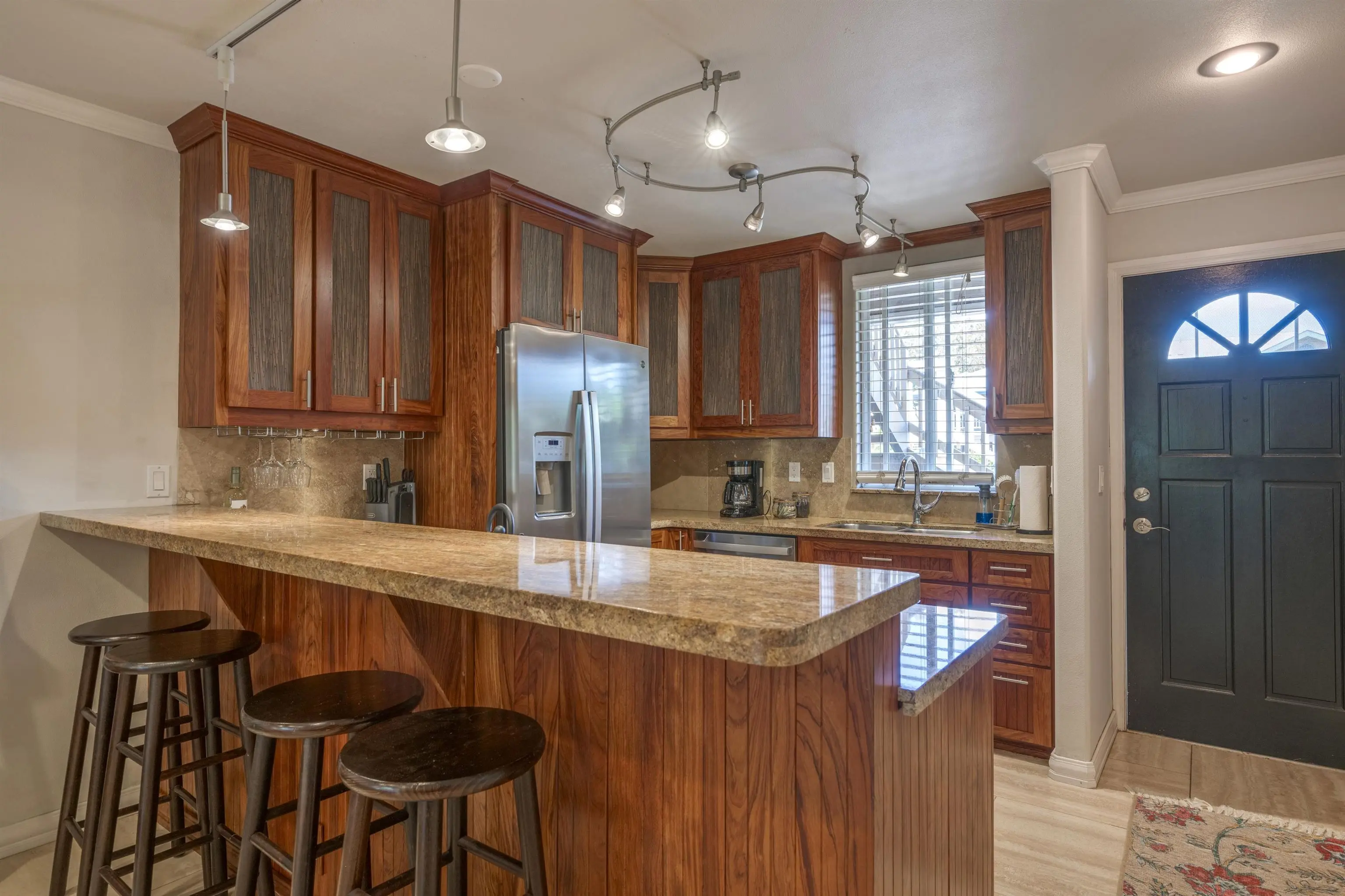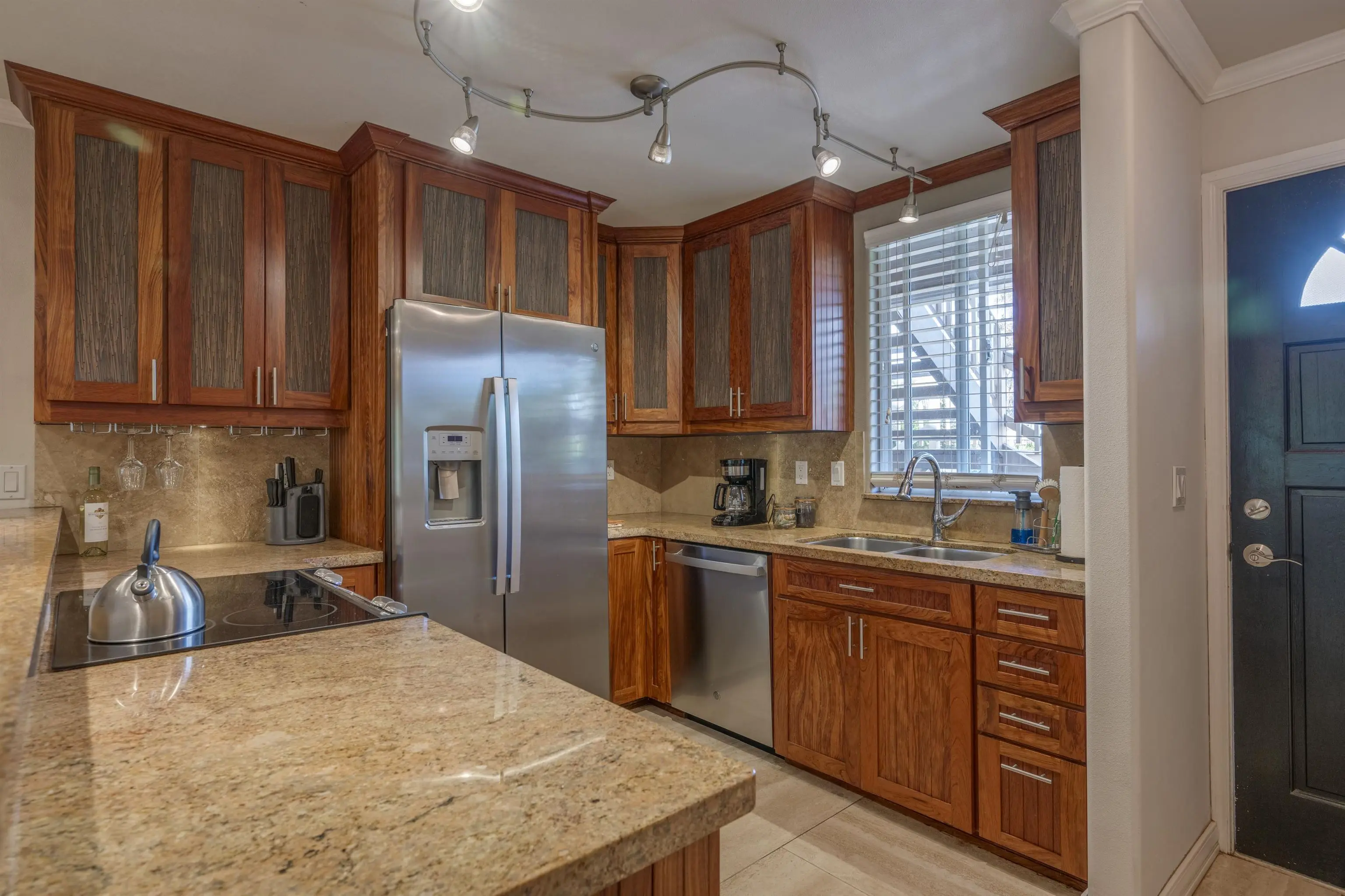 Most of the 31 concrete and wood two-story apartment buildings in this enclave cluster in groups. The subdivision includes a total of 346 units. Every residence features either a patio or a private lanai. Some upper-level homes offer panoramic views of the nearby West Maui Mountains. Downstairs apartments often enjoy attractively fenced back yards.