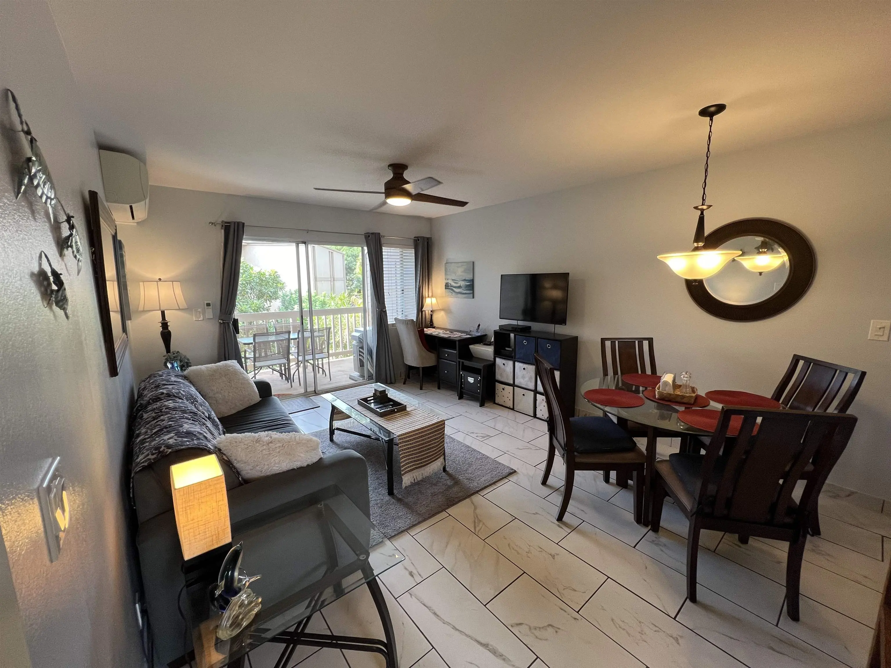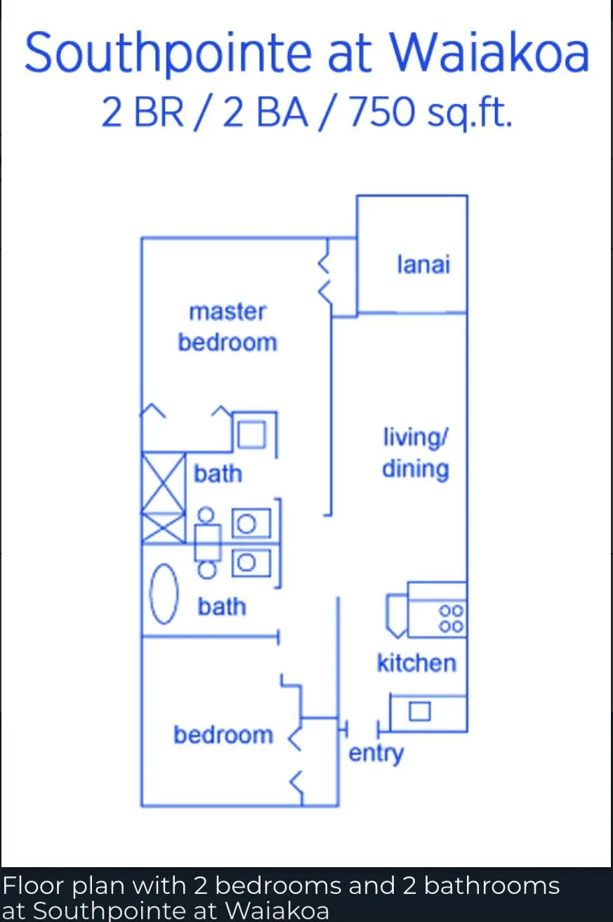Condos for sale in Kihei in this development utilize a number of different floor plans. The vast majority of apartments (some 208 units) supply two bedrooms and one-and-a-half baths. These units encompass a total of 750 finished square feet of interior space.