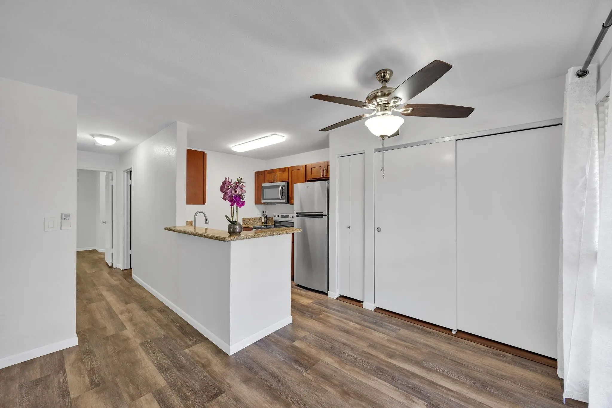 An additional 68 residences feature the same amount of floor space but offer two bedrooms and two full baths instead. Finally, 60 smaller apartments include a two-bedroom, one-bath unit within 650 finished square feet.